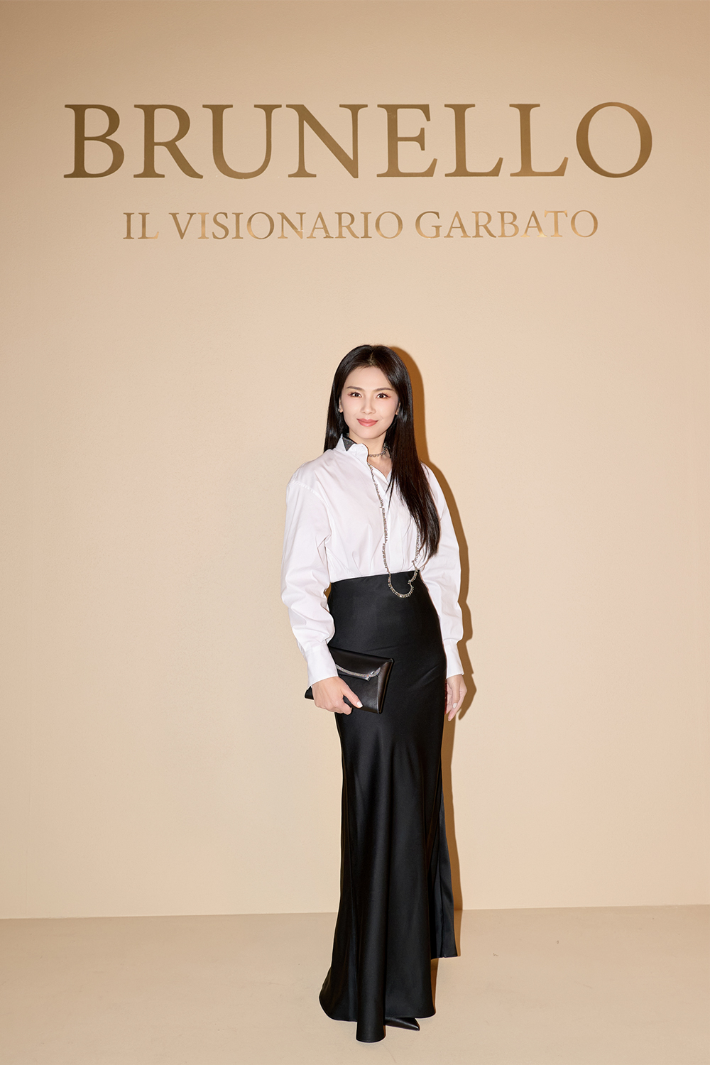 演员刘涛身着Brunello Cucinelli经典Monili珠链领饰衬衫人鱼裙,搭配燕麦棕羊绒大衣与Monili珠链枝叶长项链亮相金色长毯。