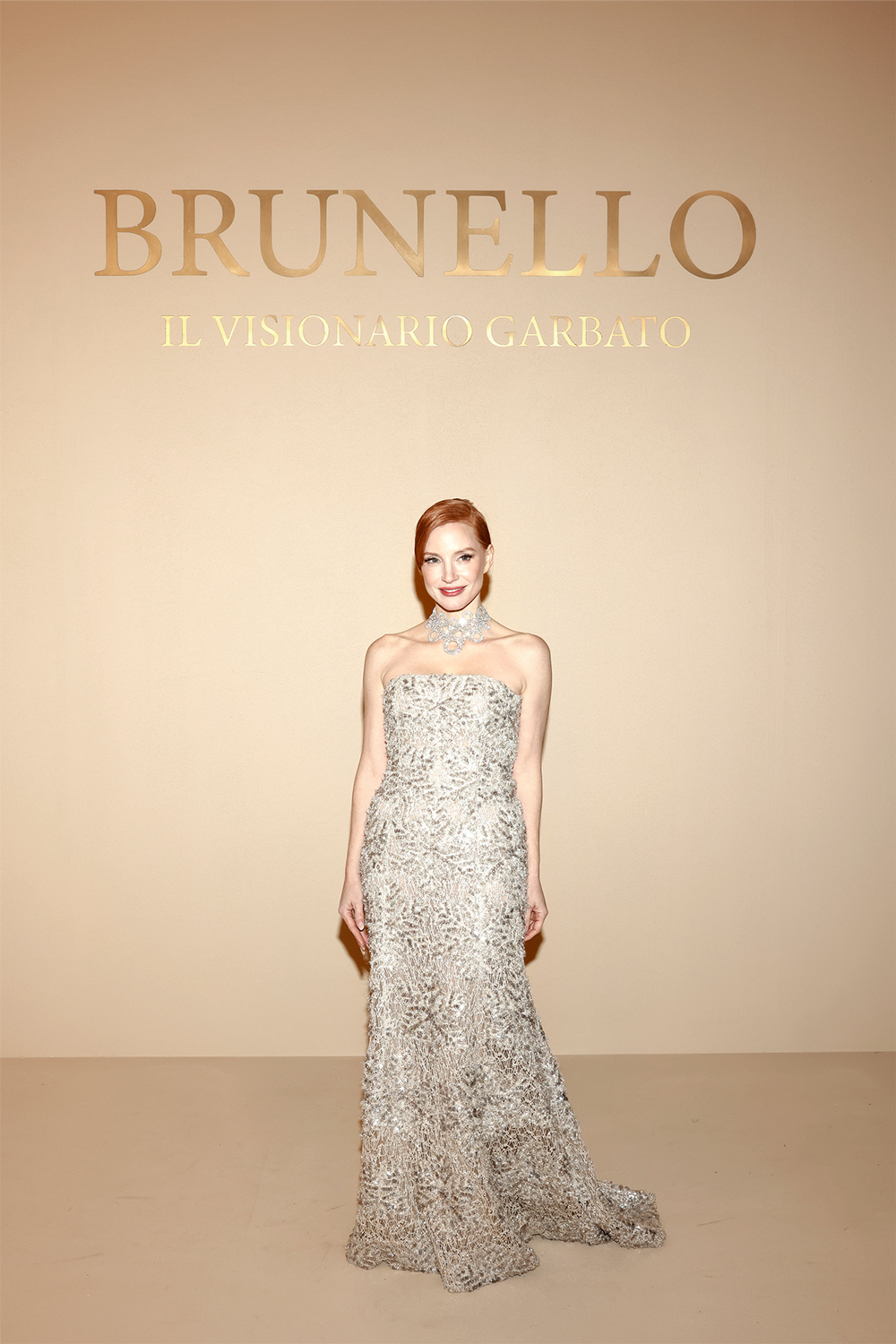 温情典礼,星光璀璨。奥斯卡影后杰西卡·查斯坦(Jessica Chastain)、好莱坞影星杰夫·高布伦(Jeff Goldblum)、克里斯·派恩 (Chris Pine)、乔纳森·贝利(Jonathan Bailey);韩国演员朴珍荣(Park JinYoung)、申世景(Shin Se Kyung);德国网球运动员亚历山大·兹维列夫(Alexander Zverev)与意大利超模比安卡·巴尔蒂(Bianca Balti)等业界先锋,与Brunello先生的朋友们一同步入全新建成的22号剧院观礼。