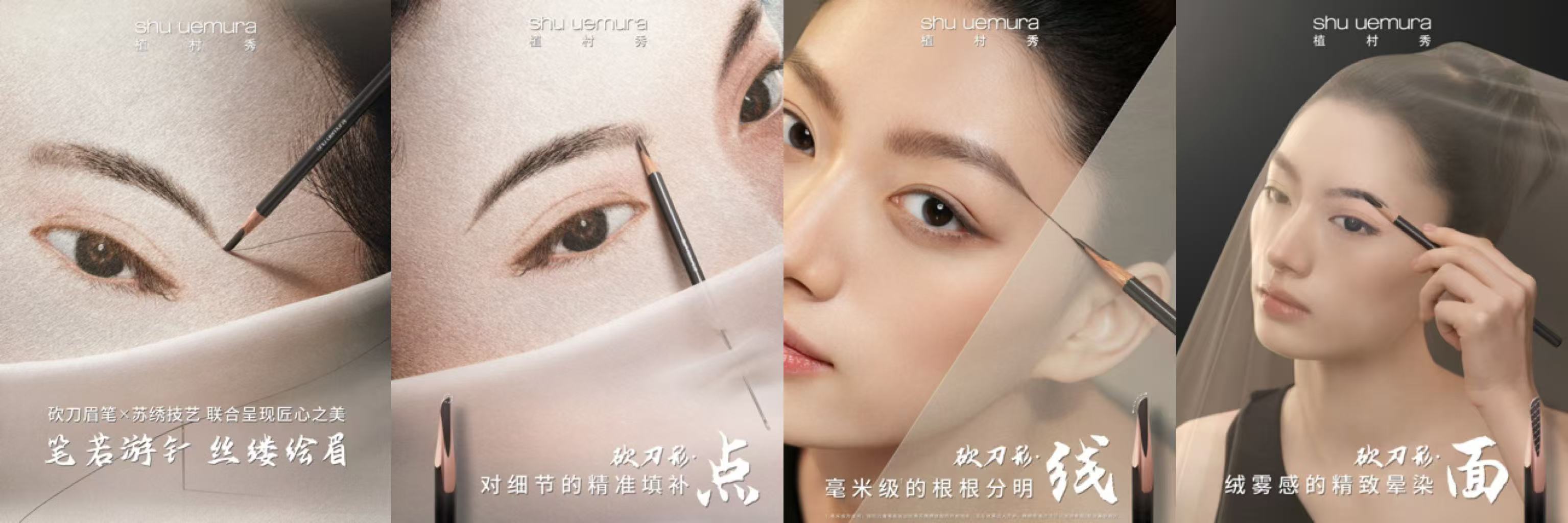 于是,一道完美的眉妆,便不再仅是妆点,而成了一幅绣于脸庞之上的微型画作。它融汇了苏绣的极致工艺与植村秀的现代笔触,让每一次描画,都成为对“点·线·面”之美的续写。