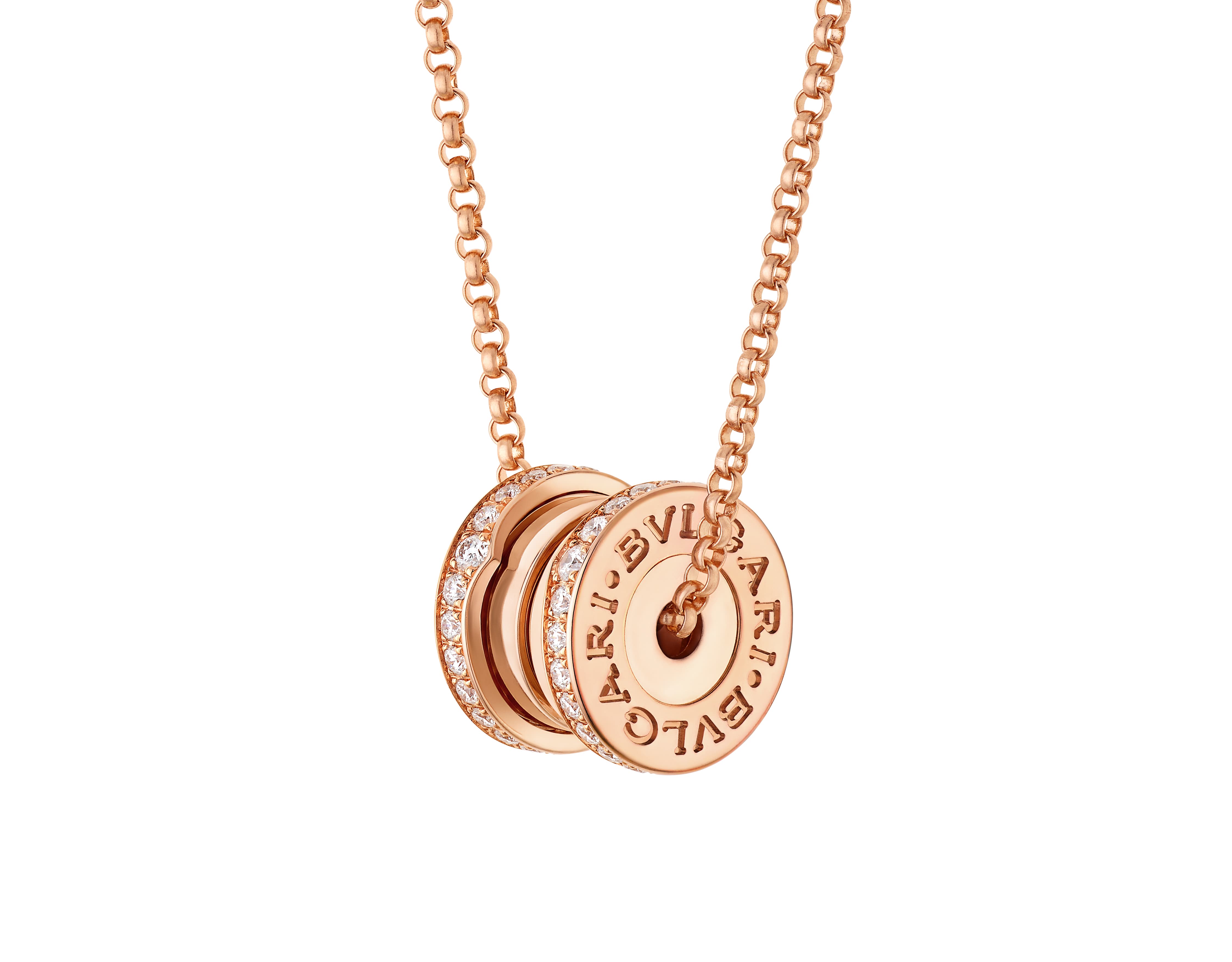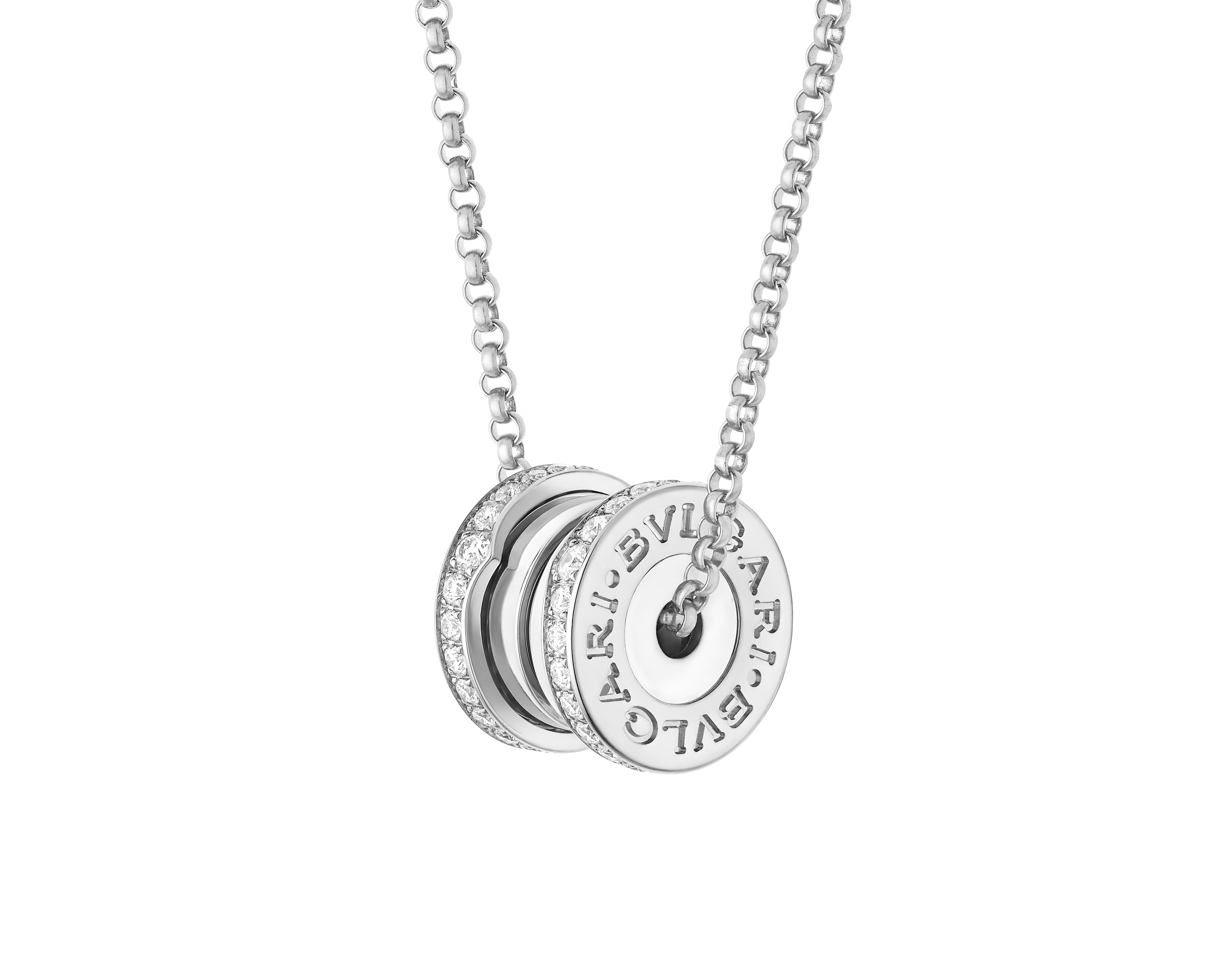 半密镶钻石项链新作以更显轻盈的构造与协调比例,焕新诠释B.zero1系列的建筑式造型。吊坠悬垂于精致链条之上,两侧以密镶钻石精巧点缀,为整体设计增添当代气息的璀璨华光。