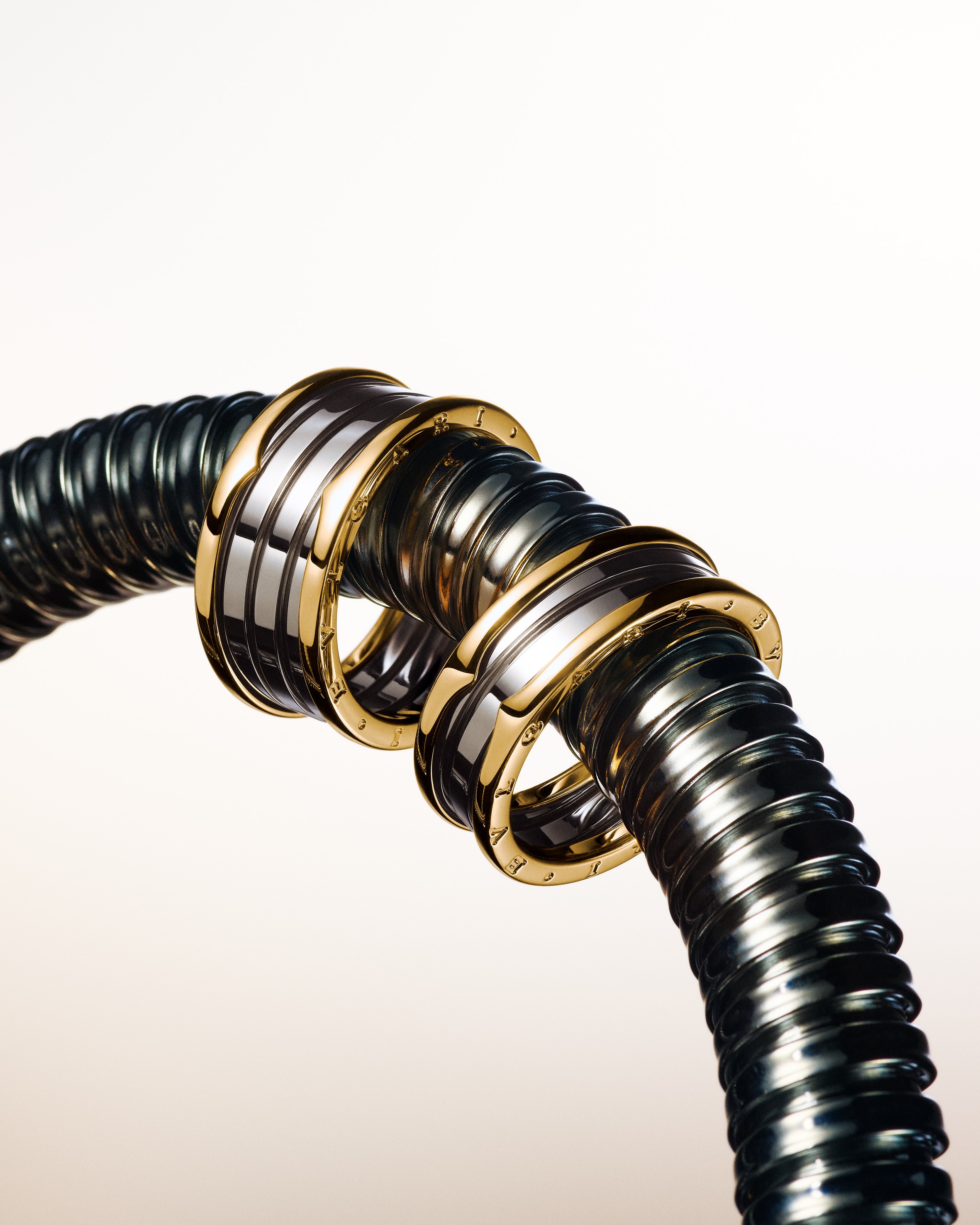 BVLGARI宝格丽以“金与精钢(Gold & Steel)”为主题,重新诠释品牌颇具创新开拓精神的核心创意领域之一,演绎18K金与精钢的邂逅之美。自20世纪70年代起,珍贵金材质与精钢的交融,便塑造了品牌的前卫设计美学。此次,这一大胆材质组合通过分别采用双圈与四圈设计的两款B.zero1系列戒指焕新呈现,巧妙兼顾轻盈质感、舒适佩戴体验与日常搭配需求。与此同时,一套Tubogas系列珠宝作品、臻美的高级珠宝作品与Serpenti Tubogas Studs胶囊腕表亦联袂亮相。长久以来,这两大经典设计凭借勇于探索的创作理念、自成格调的美学风格与高超的工艺技法而备受赞誉。如今,借由18K金与精钢引人入胜的材质碰撞,它们持续在传统与现代之间展开对话,再度展现演进不止的经典风华。