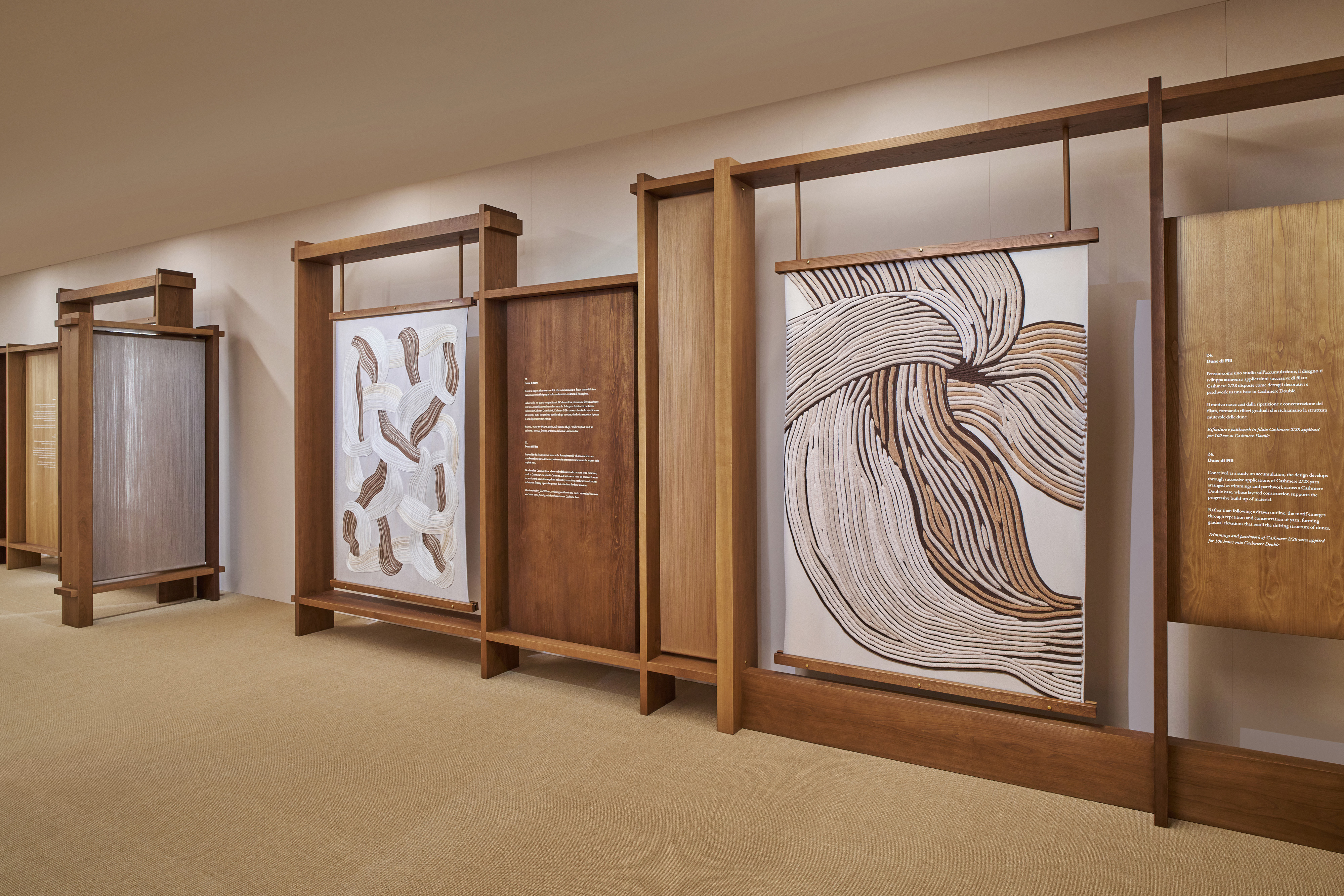 展览运用策展式语言,在聚焦成品的同时溯源原料,展示纤维与纱线。这些元素皆是 Loro Piana 的品牌核心,其蜕变成型的制作工艺亦在此一并呈现。盖毯在此不仅是一种完整的成品形态,更是一种精湛工艺的结晶。